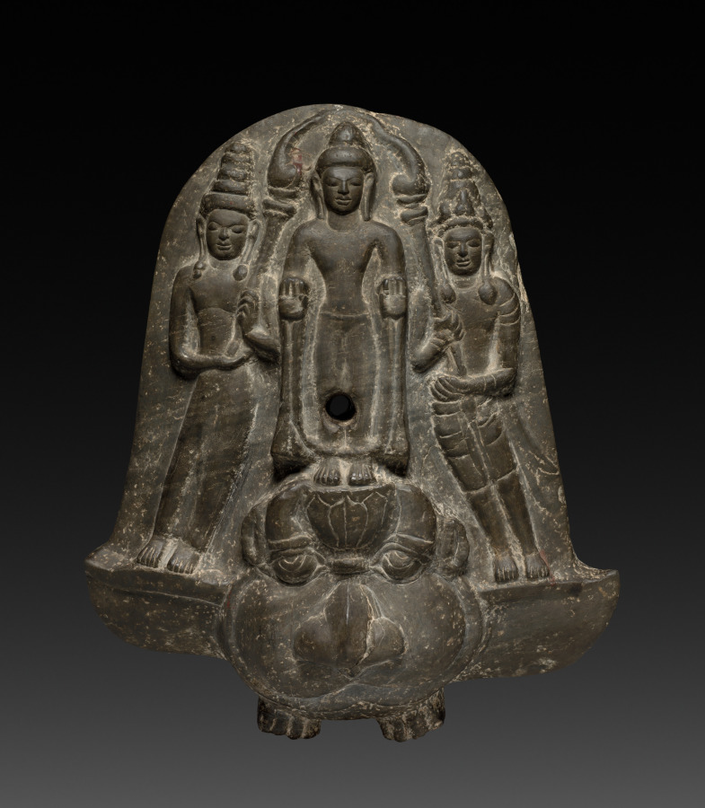 This Asian work, dating to 700s–800s. Made from gray schist, it measures Overall: 43.5 cm (17 1/8 in.).