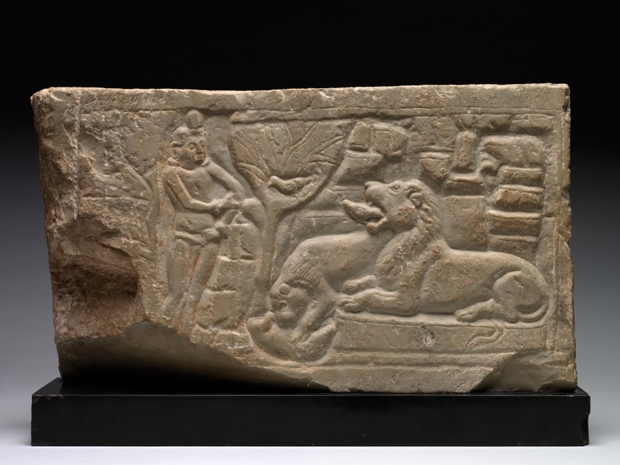 This Indian work, dating to c. 175–225 CE. Made from limestone, it measures Overall: 30.7 x 54.2 x 9.6 cm (12 1/16 x 21 5/16 x 3 3/4 in.).