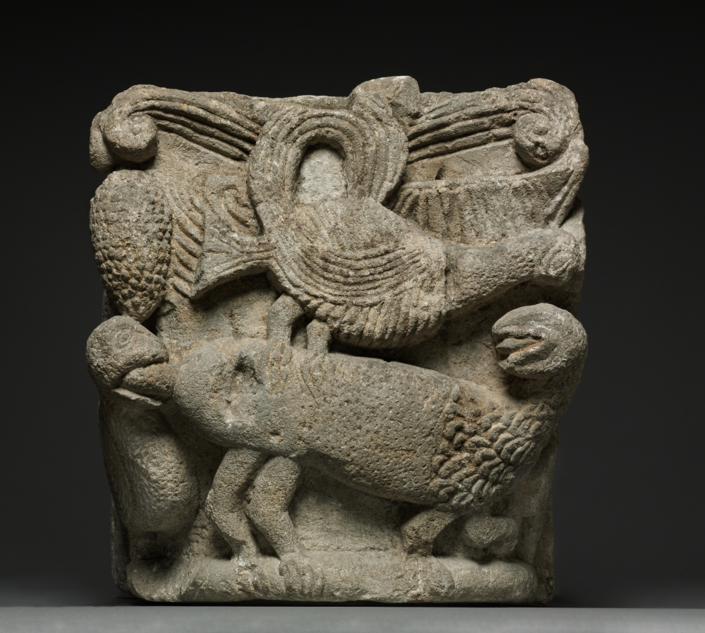 This French work, dating to early 1100s. Made from limestone, it measures Overall: 53.7 x 50.8 x 74.9 cm (21 1/8 x 20 x 29 1/2 in.).