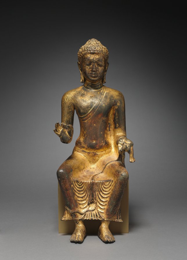 This Asian work, dating to 700s–800s. Made from copper alloy with gilding, it measures Overall: 55.1 x 24.1 x 26 cm (21 11/16 x 9 1/2 x 10 1/4 in.).
