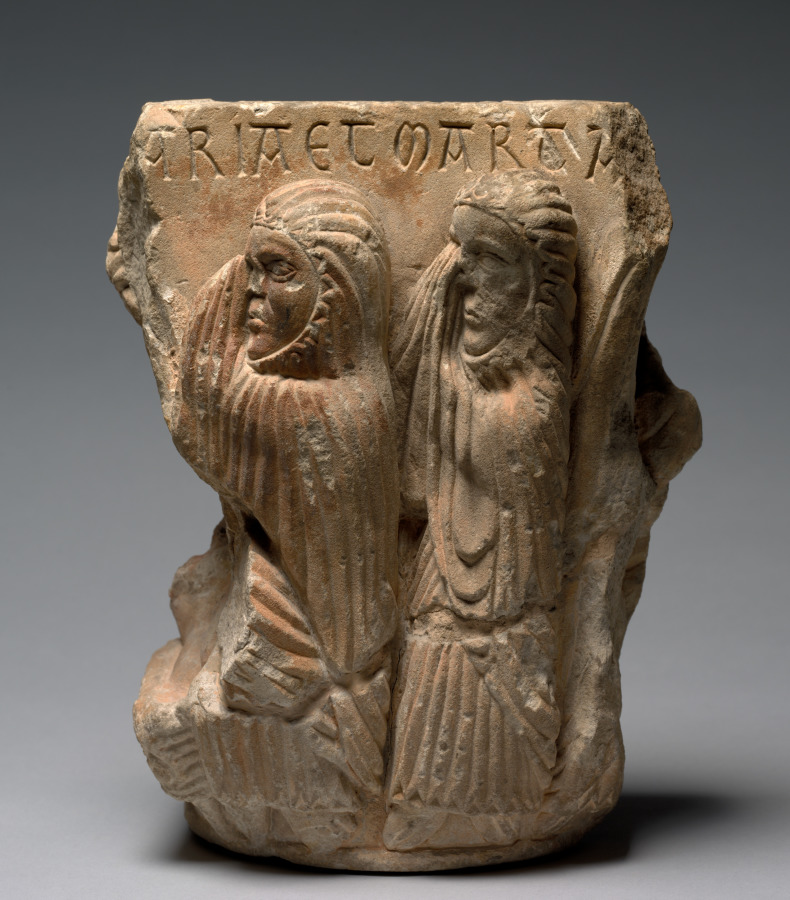 This French work, dating to 1145–1165. Made from quartz sandstone with traces of polychromy, it measures Overall: 30.2 x 22.9 x 17.2 cm (11 7/8 x 9 x 6 3/4 in.).