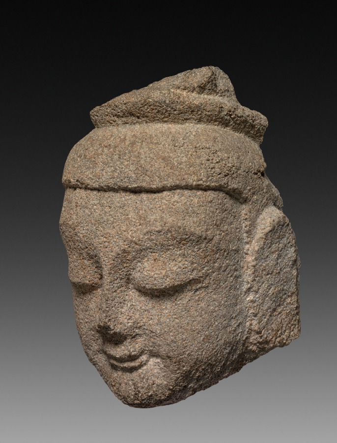 This Chinese work, dating to possibly 400s–600s CE. Made from sandstone, it measures Overall: 14.9 cm (5 7/8 in.).