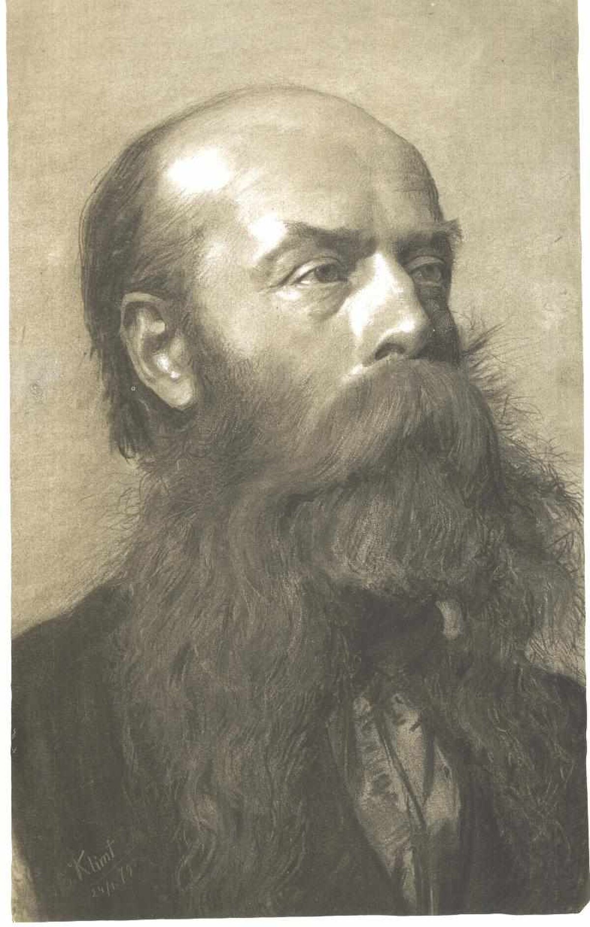 Gustav Klimt composed this portrait in 1879, when he was just seventeen years old. The work shows a bearded man in a straightforward, academic manner quite different from the golden, decorative style Klimt would later become famous for.