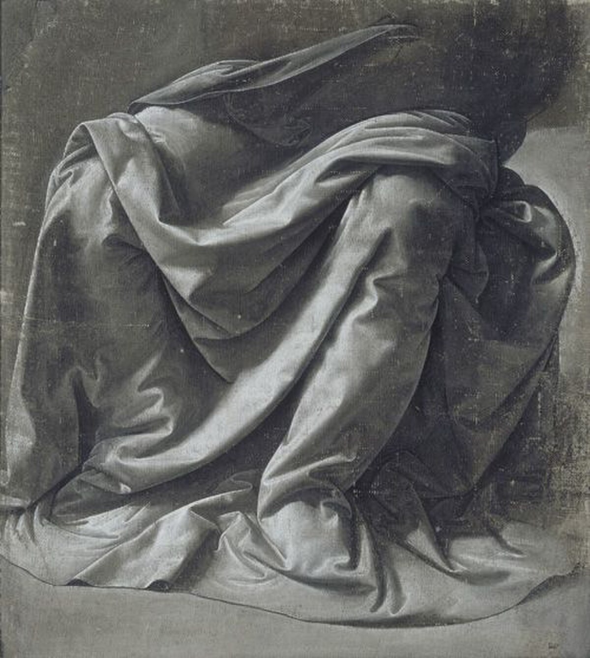Leonardo da Vinci created the study of drapery for a seated figure with extraordinary attention to light and shadow. The fabric folds are rendered with scientific precision, showing how cloth behaves over a form. Such studies prepared Leonardo for his painted works.