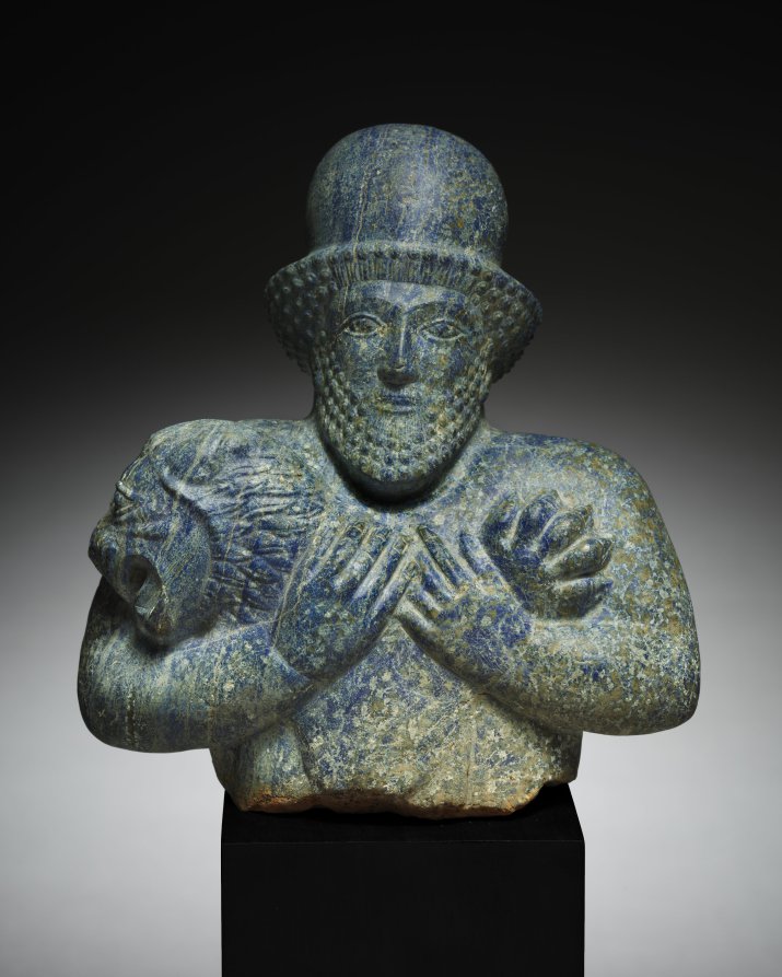 This Persian work, dating to 500–450 BCE. Made from lapis lazuli, it measures Overall: 18.7 cm (7 3/8 in.).