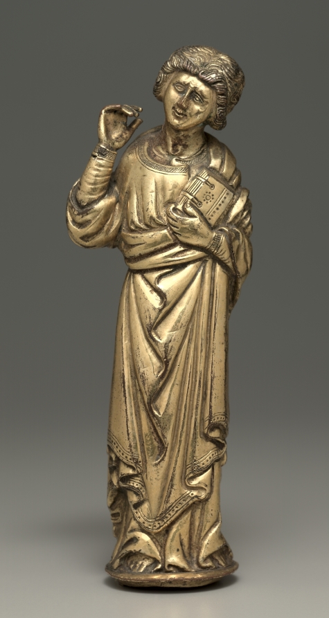This Medieval European work, dating to early 1400s. Made from gilt copper, it measures Overall: 14.6 cm (5 3/4 in.).