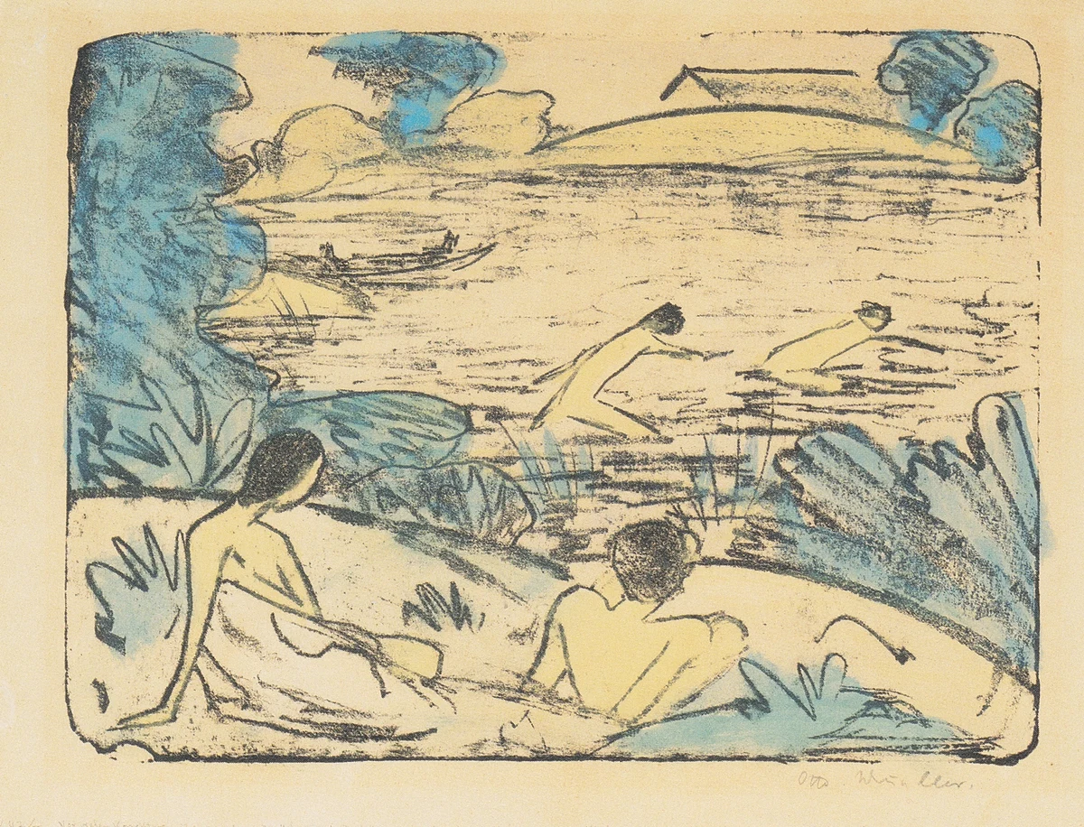 Mueller was a member of Die Brücke, the German Expressionist group, though his work remained more lyrical than his colleagues'. His vision of figures in harmony with nature reflected both his artistic ideals and his personal identification with Roma culture. The work held in the Sammlung Karsch in Berlin, part of an important collection of German Expressionist art.