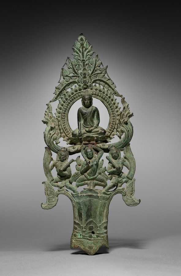 This Asian work, dating to late 1100s–early 1200s. Made from bronze, it measures Overall: 42 x 18.5 x 3 cm (16 9/16 x 7 5/16 x 1 3/16 in.).
