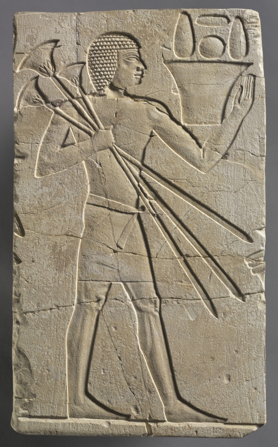 This Egyptian work, dating to c. 2311–2281 BCE. Made from painted limestone, it measures Overall: 38.4 x 72.2 cm (15 1/8 x 28 7/16 in.).