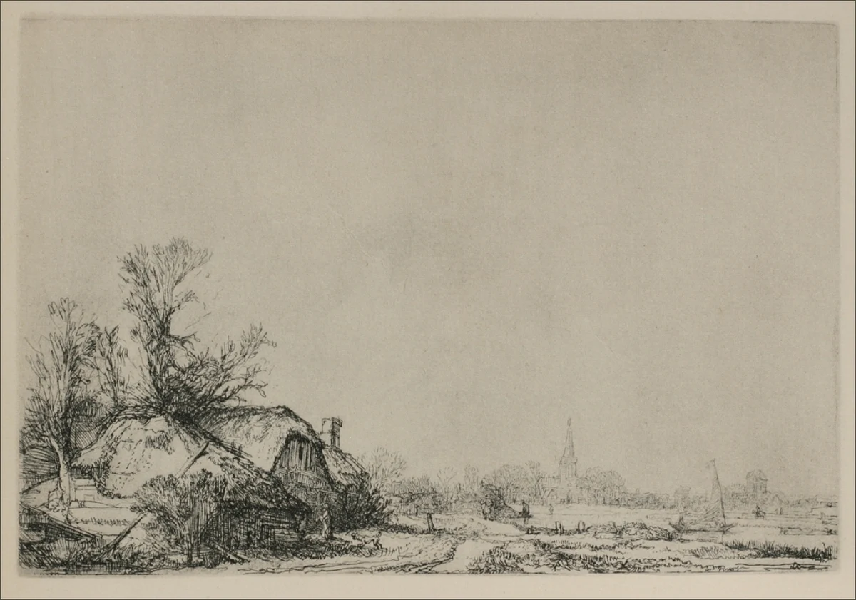 Though better known for portraits and biblical scenes, Rembrandt produced many landscape etchings and drawings during the 1640s. This small work demonstrates his ability to create atmospheric effects with minimal means.