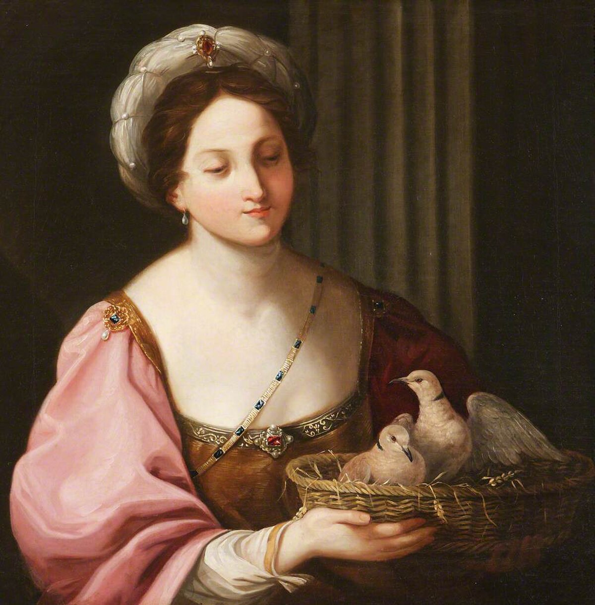 Rembrandt van Rijn painted a young woman holding a basket in this oil study. Rembrandt often depicted ordinary people with the same care as wealthy patrons.