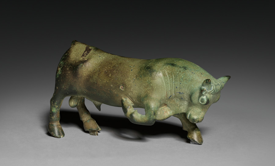 This Egyptian work, dating to late 3000s BCE. Made from bronze, it measures Overall: 5 x 6.7 x 9.5 cm (1 15/16 x 2 5/8 x 3 3/4 in.); with base: 6.5 x 6.7 x 9.5 cm (2 9/16 x 2 5/8 x 3 3/4 in.).