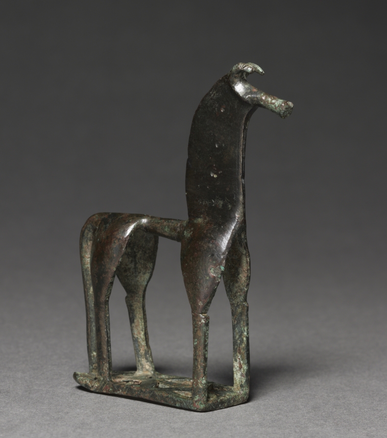 This Greek work, dating to 750–700 BCE. Made from bronze, it measures Overall: 11.5 x 10 x 2.6 cm (4 1/2 x 3 15/16 x 1 in.).