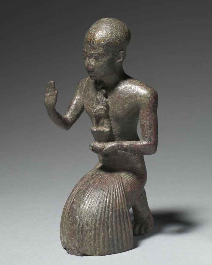 This Egyptian work, dating to 1186–1069 BCE. Made from tin-bronze alloy, probably leaded, hollow cast, it measures Overall: 15.8 x 6.2 x 6.5 cm (6 1/4 x 2 7/16 x 2 9/16 in.).
