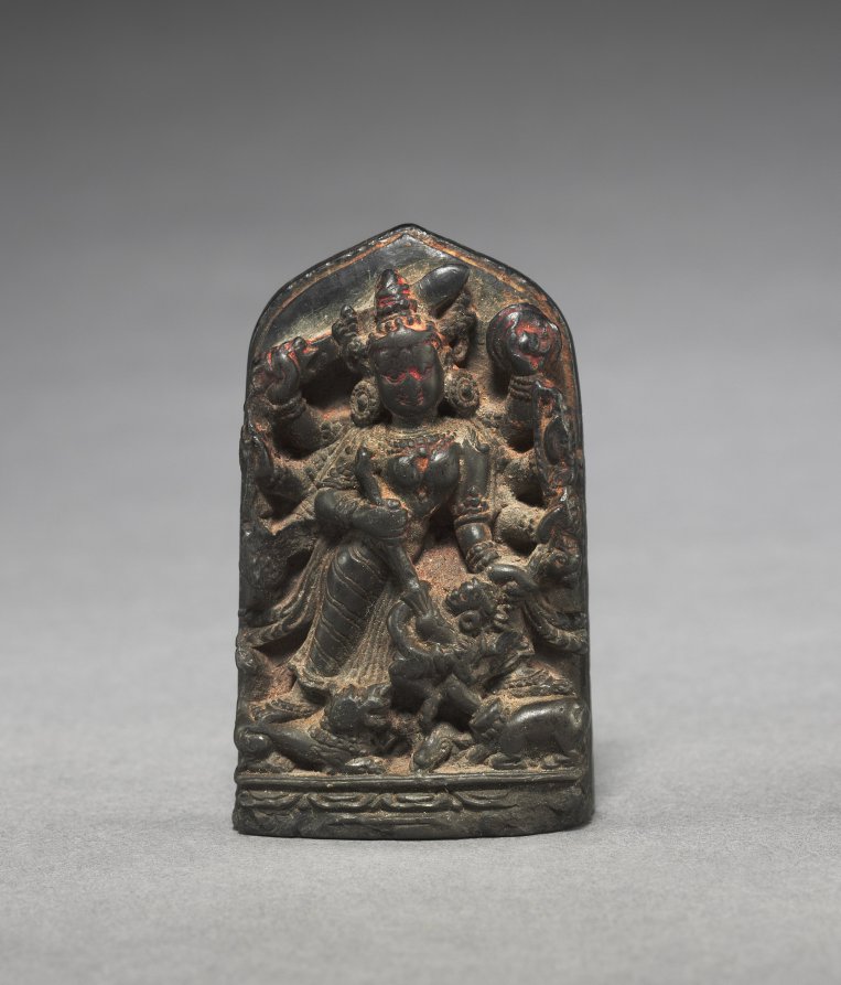 This Indian work, dating to 1100s-1200s. Made from black chlorite, it measures Overall: 7 x 4.2 cm (2 3/4 x 1 5/8 in.).