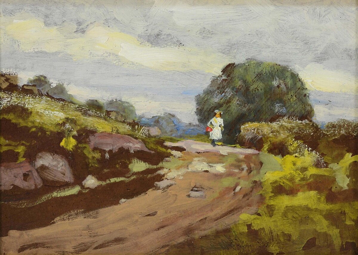 William Merritt Chase demonstrates his virtuoso brushwork in The King's Jester, a costume piece showing a figure in elaborate colorful dress. Chase excelled at capturing rich textures and the play of light on fabrics, skills he honed studying Old Masters in Munich.