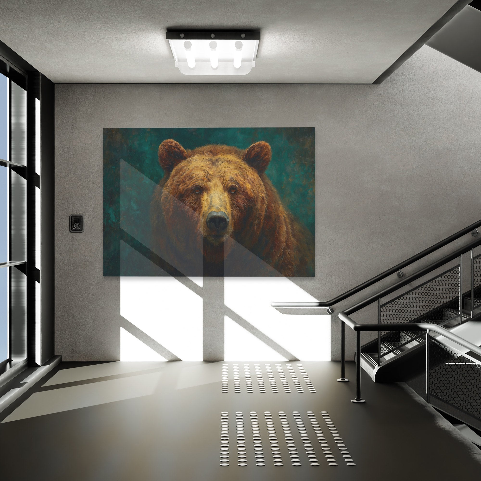 This wildlife piece brings powerful commanding presence through detailed realistic styling. The work suits living rooms, lodges, or spaces that appreciate powerful bear imagery.