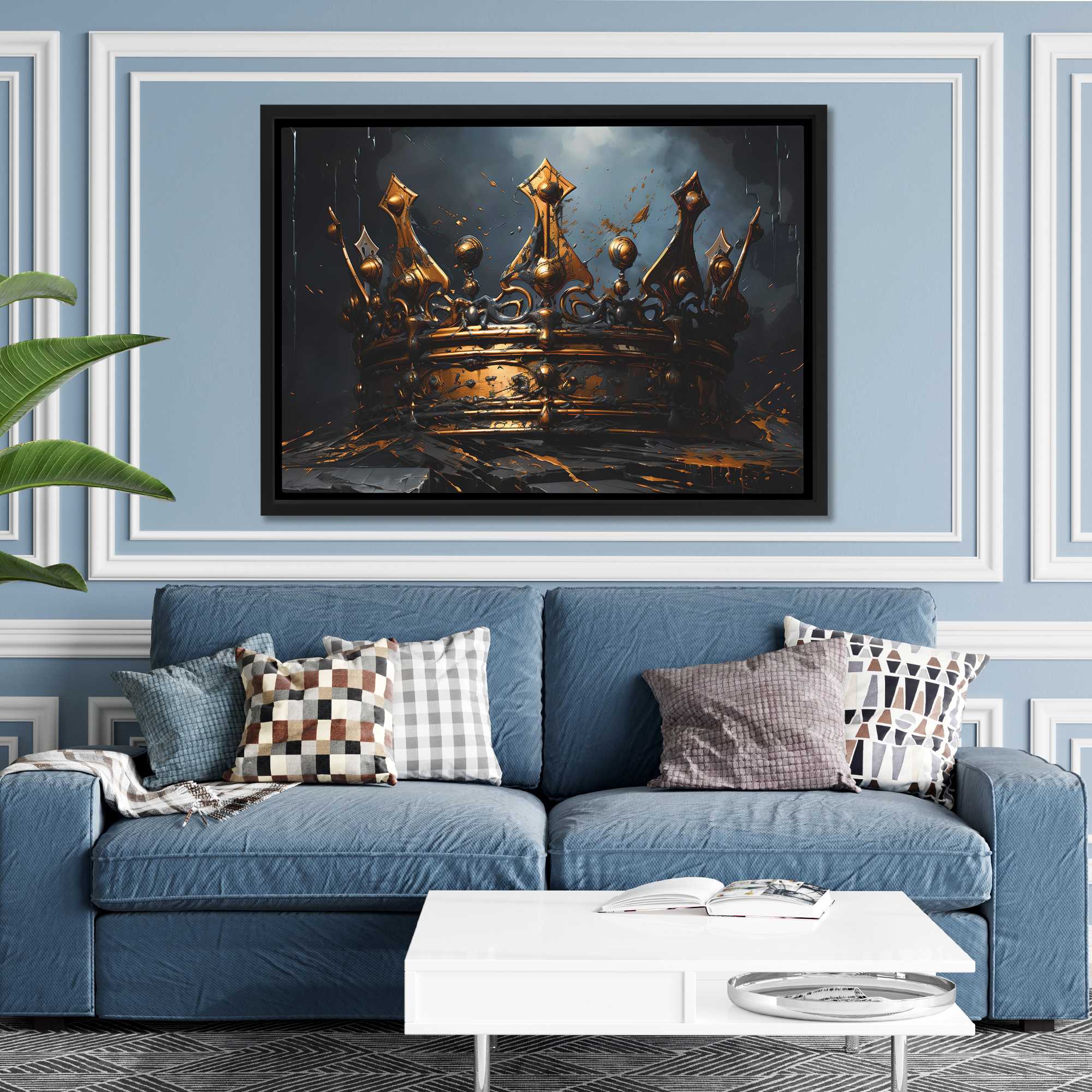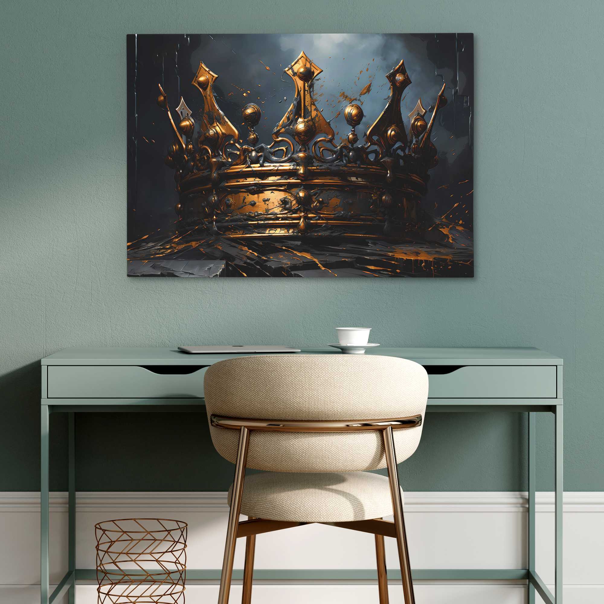 A gold crown glows against a dark background. Midnight Regalia is clean, bold, and built for spaces that need a single strong piece.