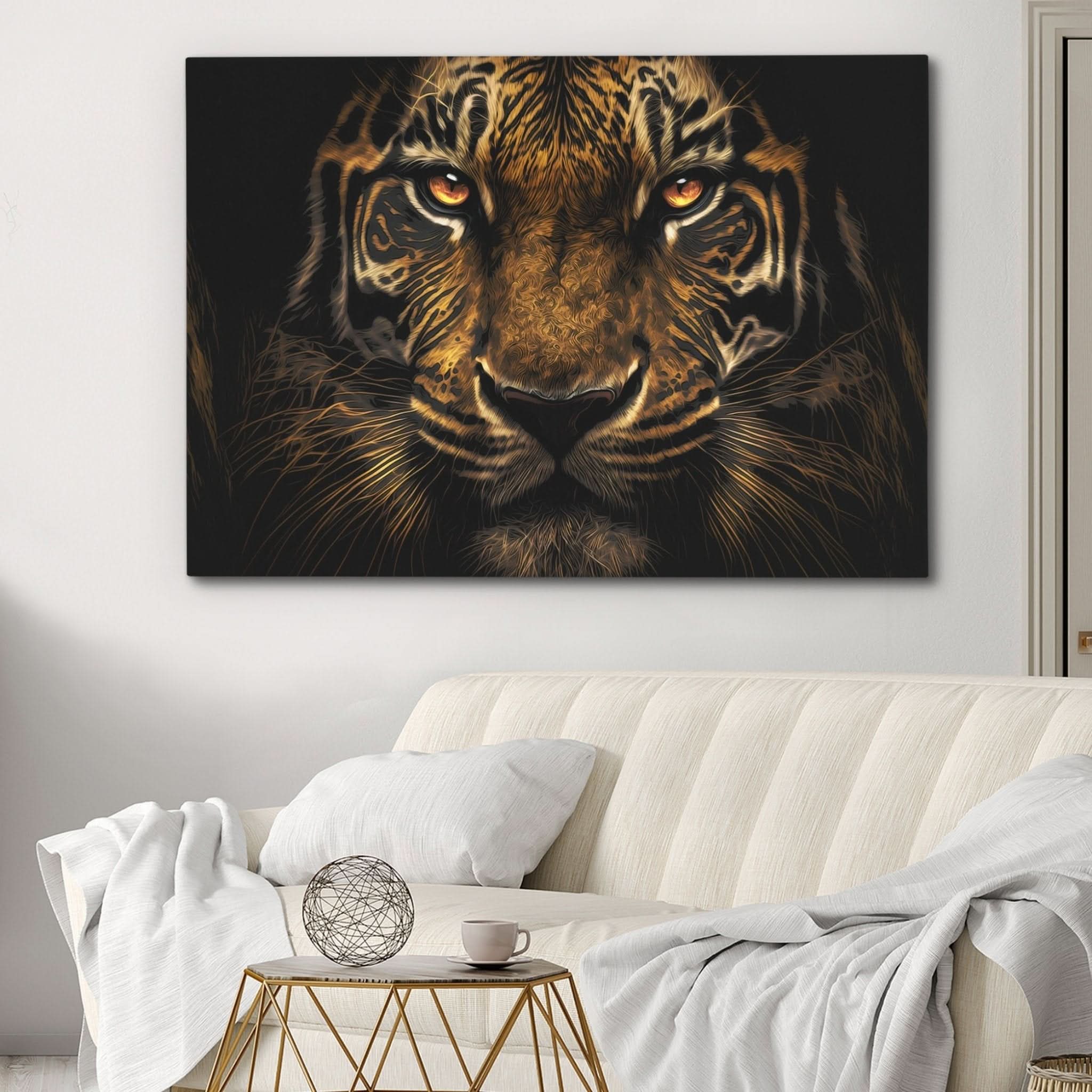 This unique black and gold tiger painting is an essential piece for any art lover's collection, seamlessly converting any room into a lively and motivating haven.