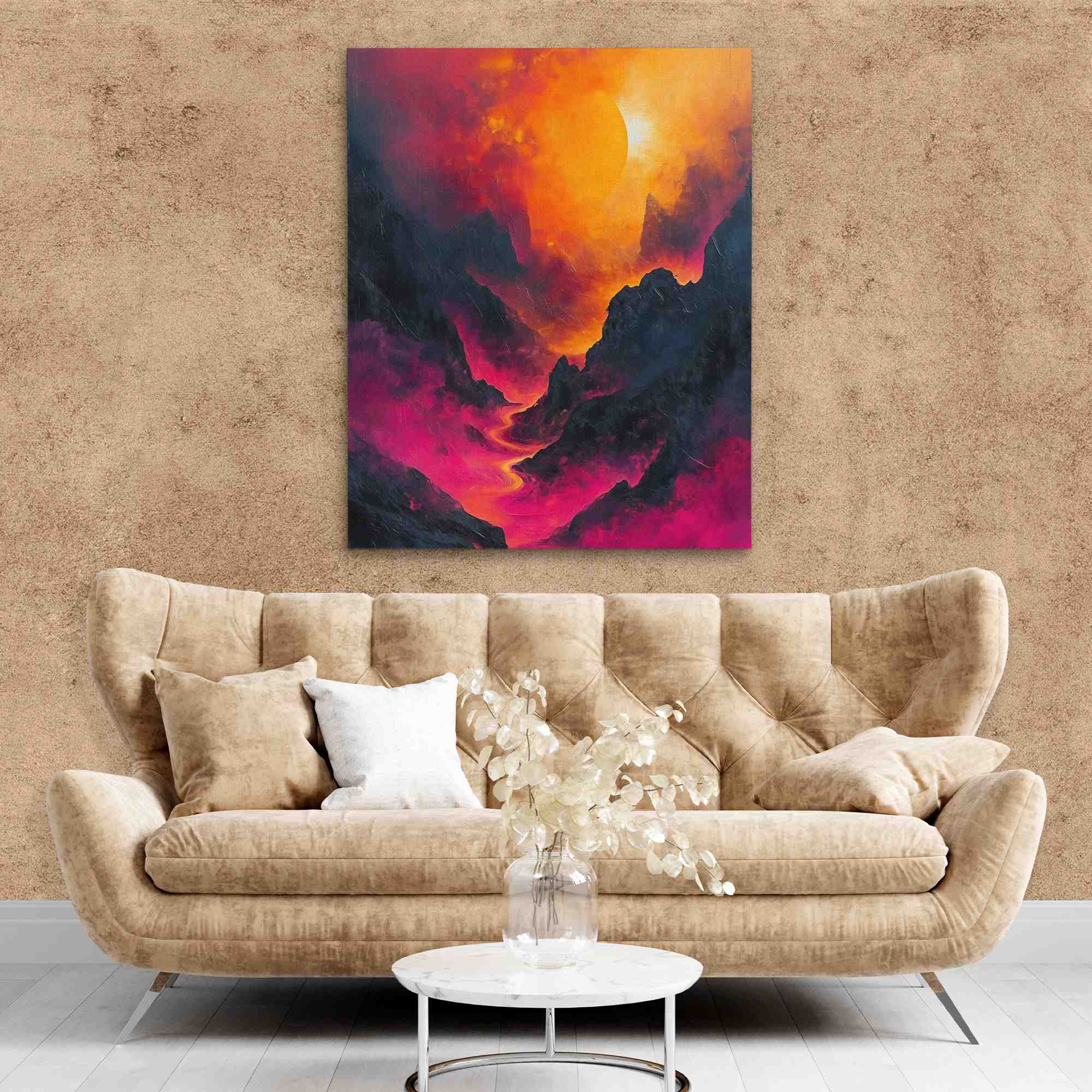 Pink Lava captivating artwork features a dramatic landscape with vibrant pink and fiery lava flows, creating a mesmerizing and bold visual experience. Perfect for adding a unique and eye-catching piece to any room, this artwork combines the raw power of nature with the beauty of abstract art.