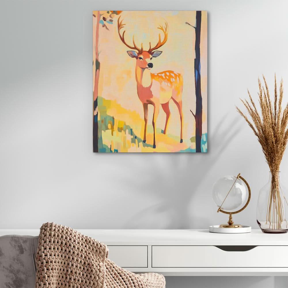 Collections: Animal Artwork, Deer Art, Hallway Art, Luxury Canvas Prints, Nature Art, Orange Art, Pastel Colors, Yellow Paintings