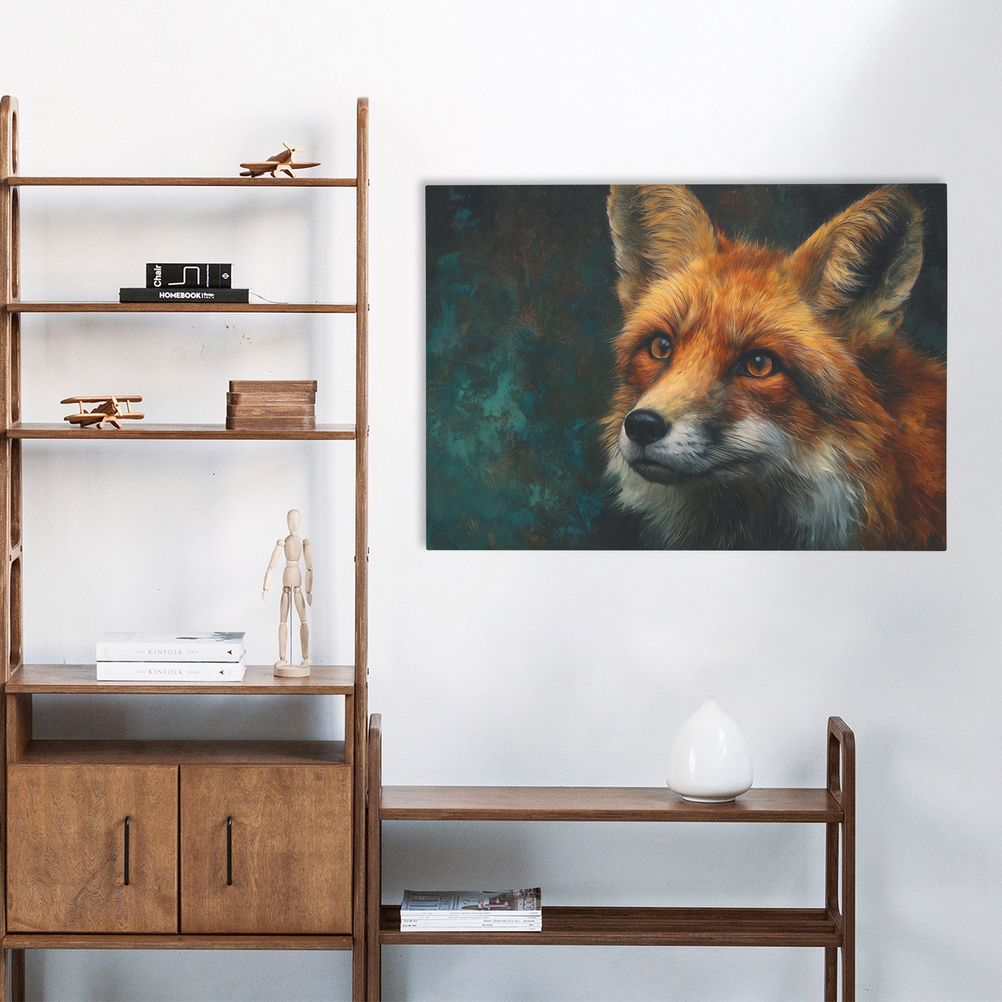 This wildlife piece brings contemplative woodland presence through intimate portraiture. The work suits living rooms, bedrooms, or spaces that appreciate detailed fox imagery.