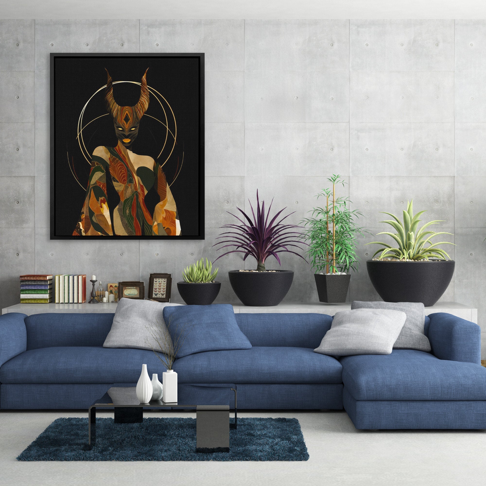An oni framed in sacred geometry. Dark and ornate. Perfect for living rooms or spaces drawn to Eastern mysticism.