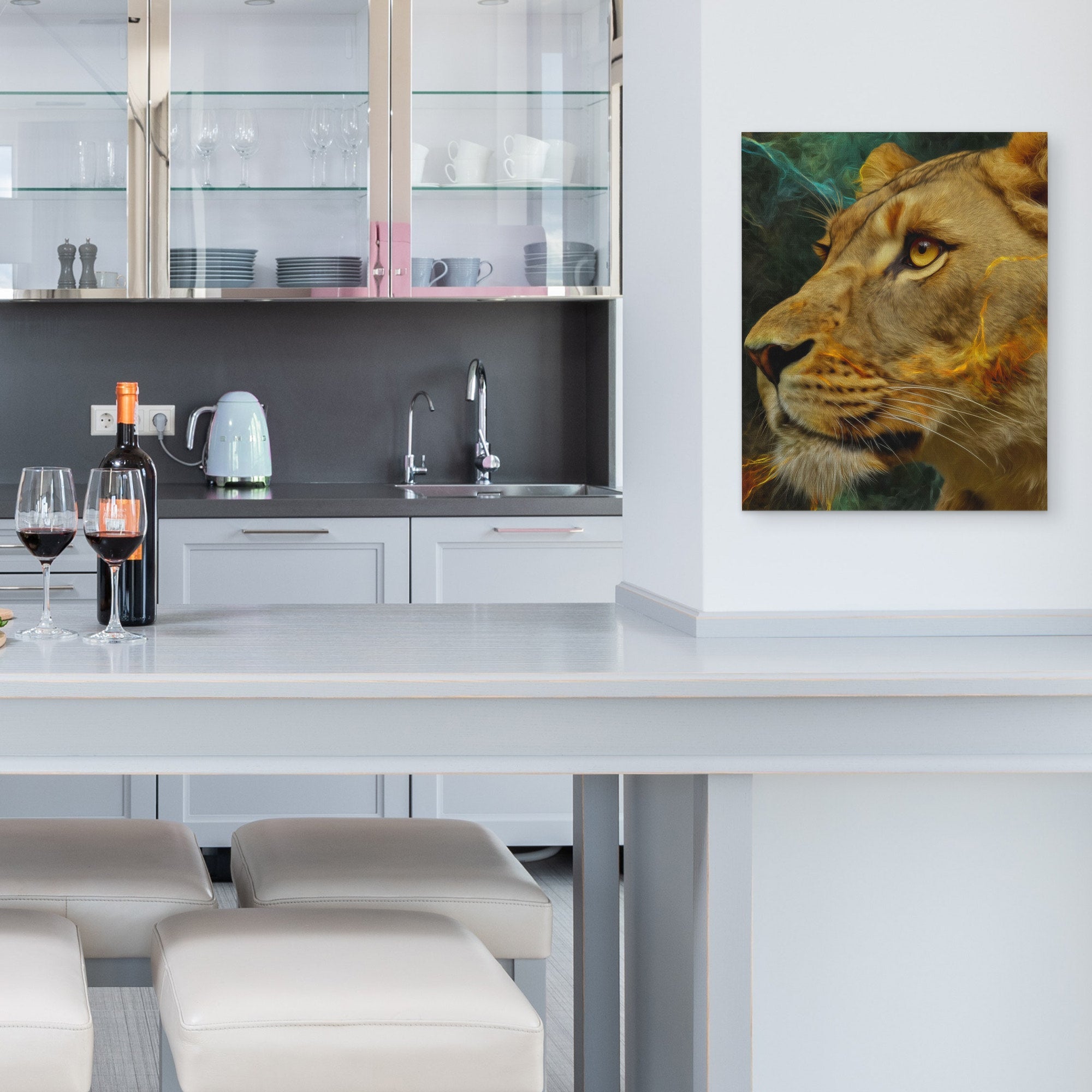 She doesn't roar. She doesn't need to. This lioness commands the room with amber eyes and a coat that glows like embers. Perfect for living rooms, offices, or anywhere that appreciates power with poise.