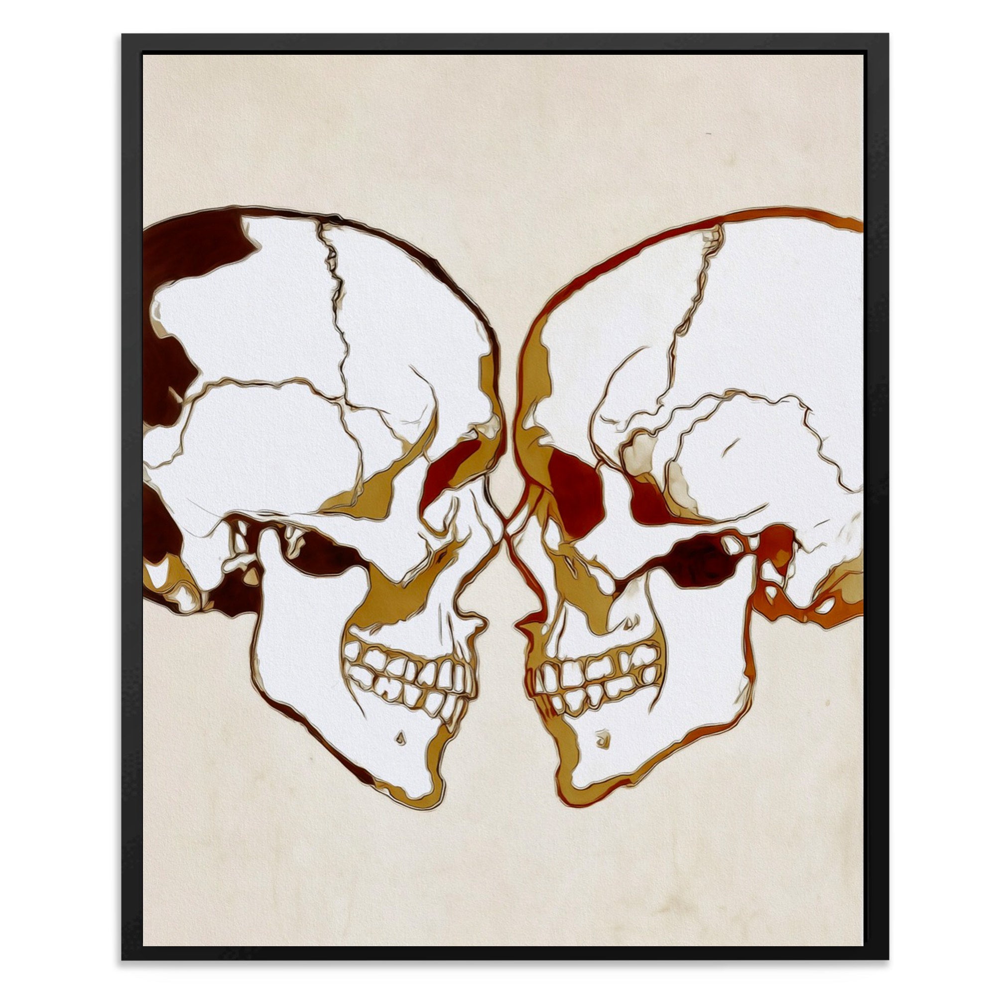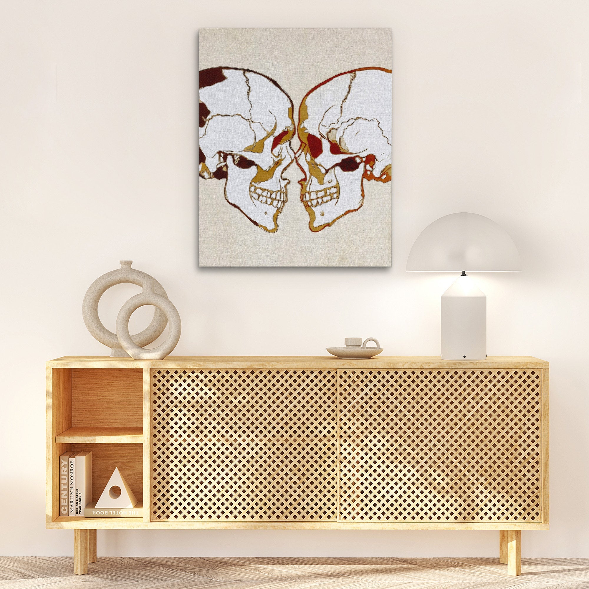 Two skulls in mirror pose. Bold and contemplative. Perfect for living rooms, bars, or gothic-themed spaces.