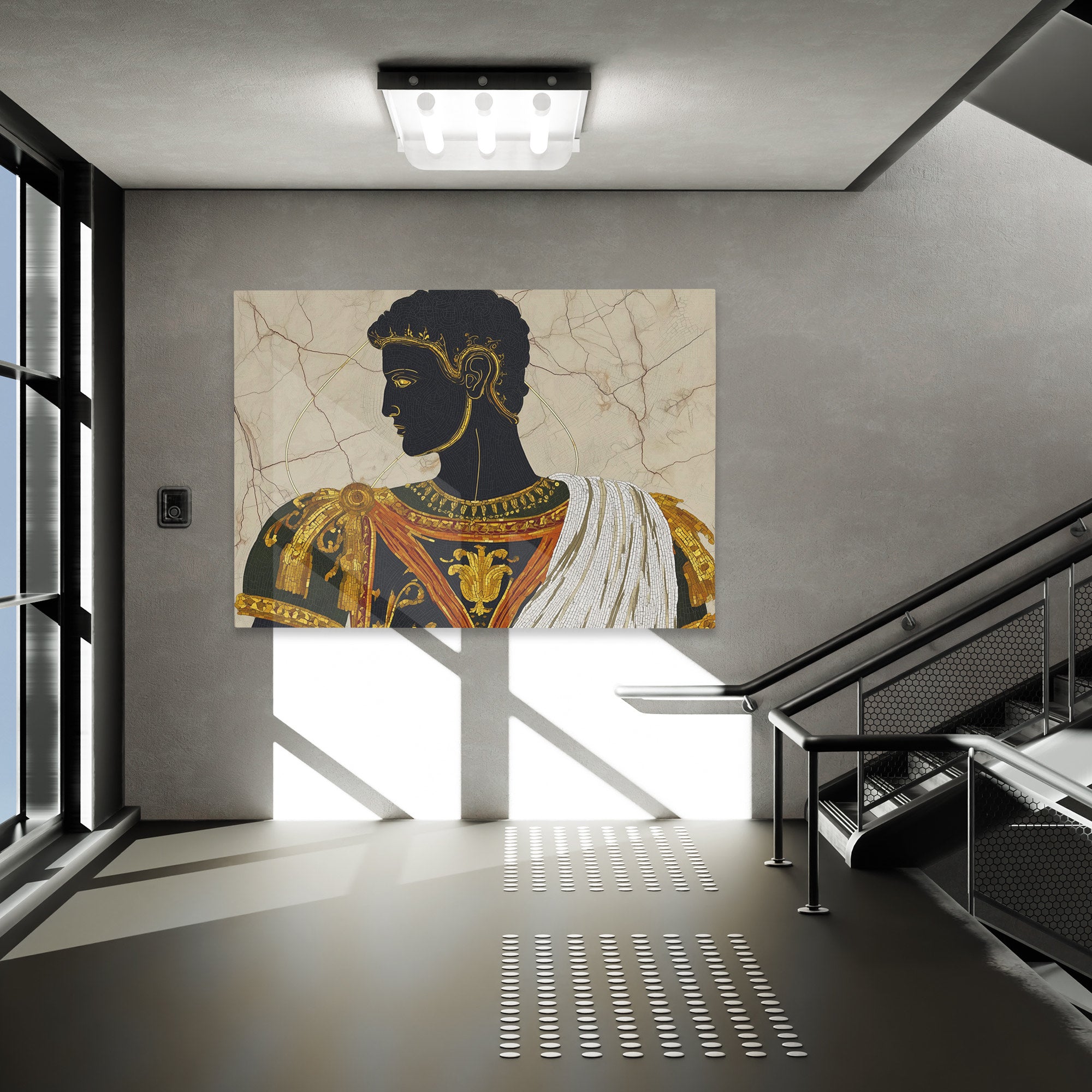 This classical piece celebrates Roman imagery through mosaic-inspired treatment. The work brings imperial presence to home offices, studies, or spaces that appreciate classical antiquity with artistic interpretation.