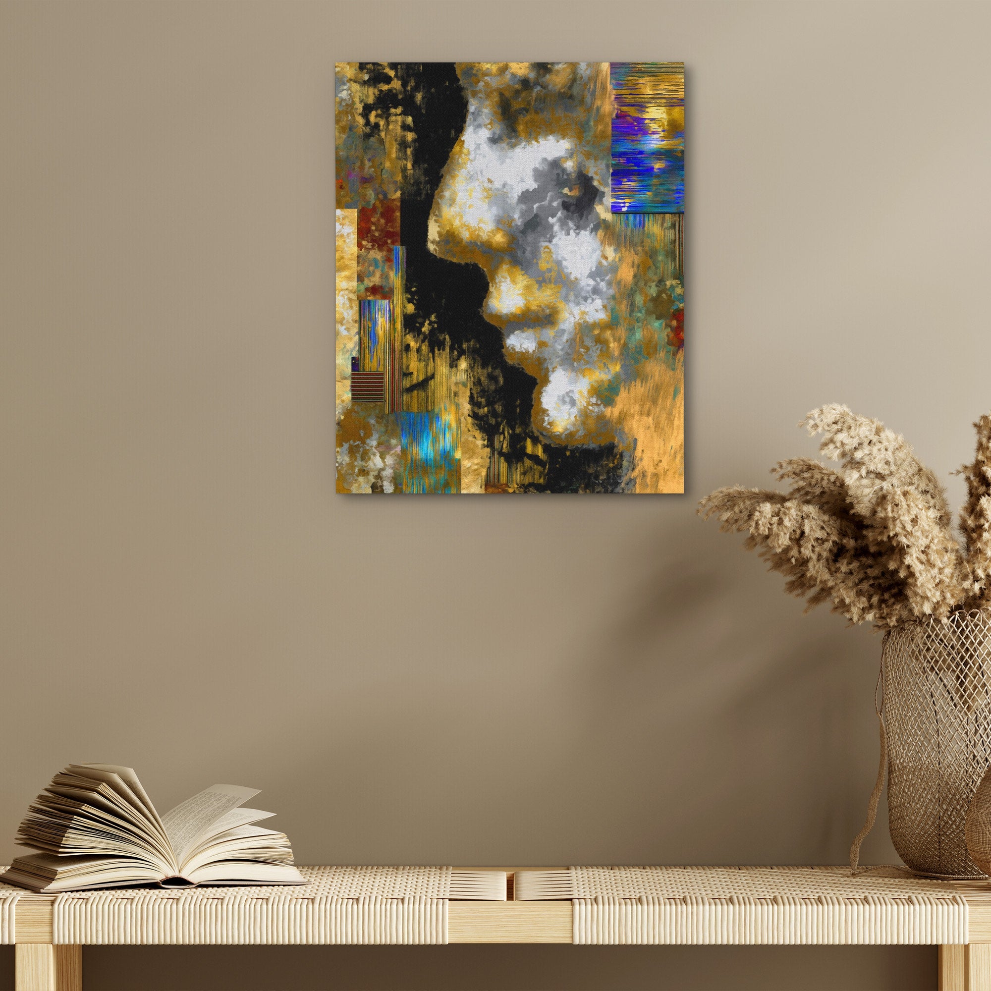 This abstract piece explores decay and digital distortion through architectural fragments. The piece brings edgy contemporary energy to creative studios, home offices, or spaces that appreciate experimental digital aesthetics.