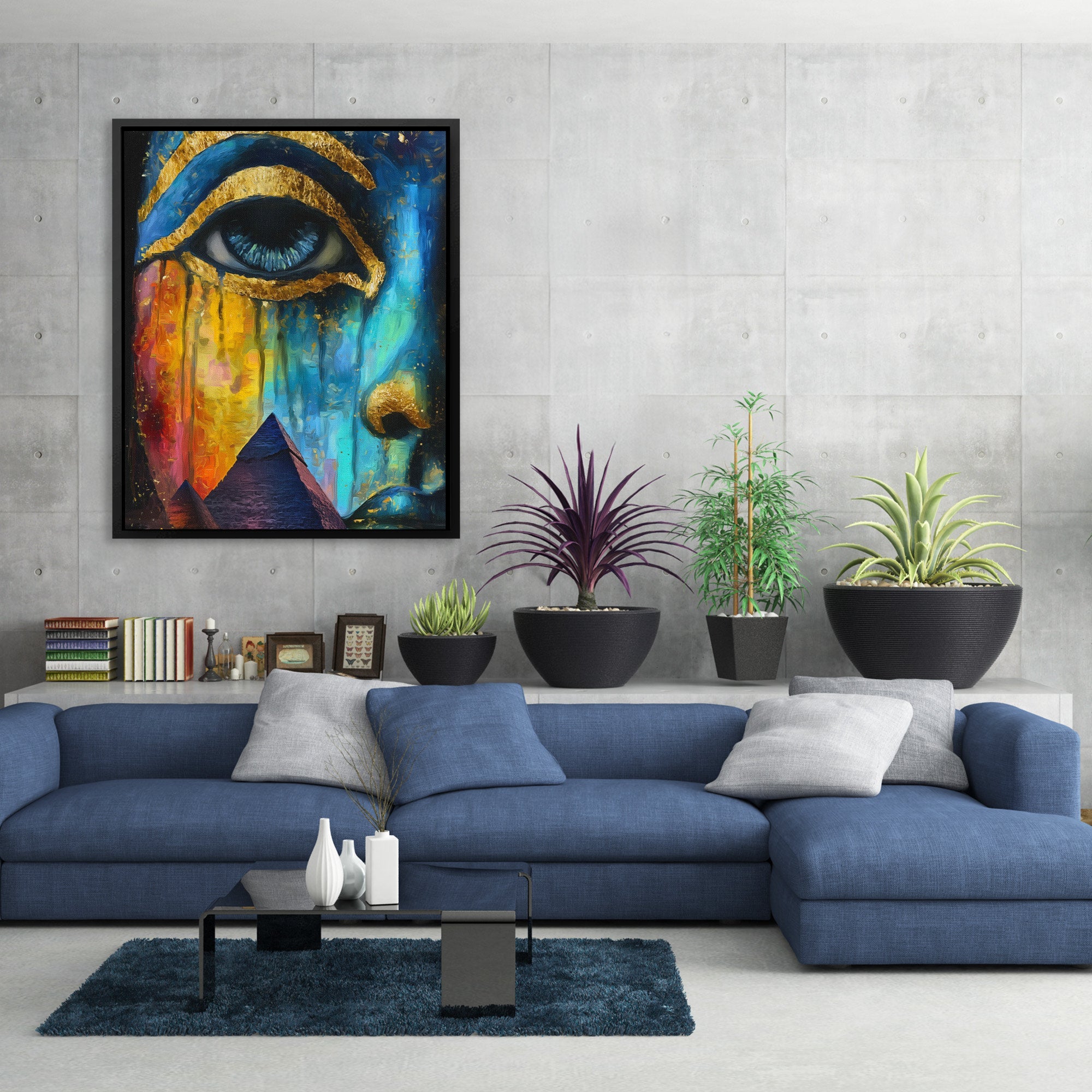 This surreal portrait explores vision and perception through striking eye imagery. The piece brings mysterious depth to bedrooms, studies, or creative spaces that appreciate art with psychological resonance.