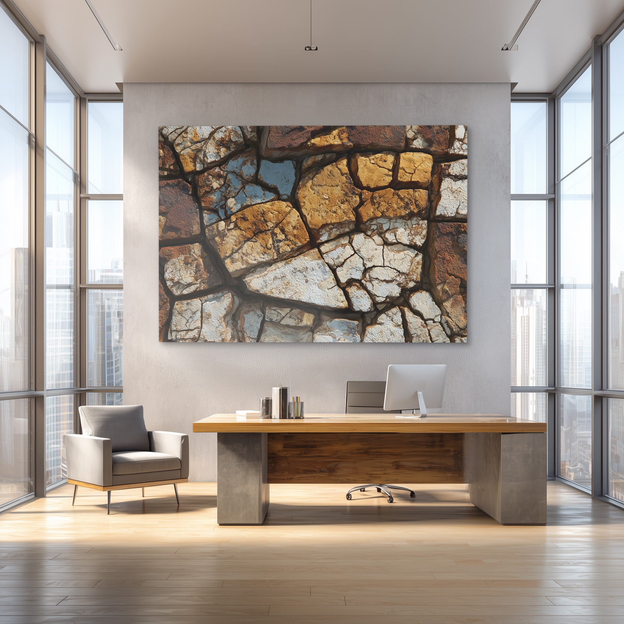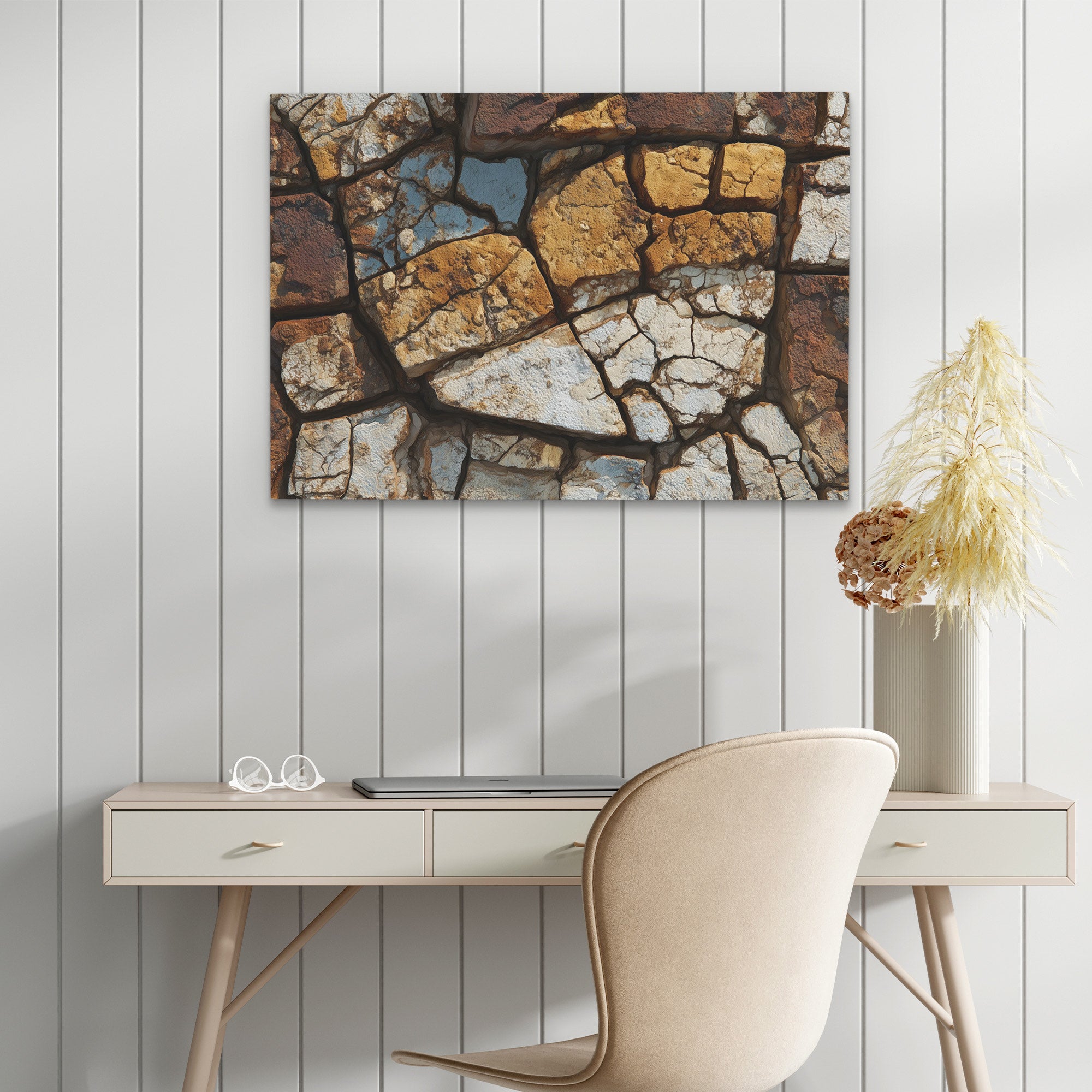 This nature piece brings raw desert beauty through stark realistic treatment. The work suits living rooms, bathrooms, or spaces that appreciate earth texture photography.