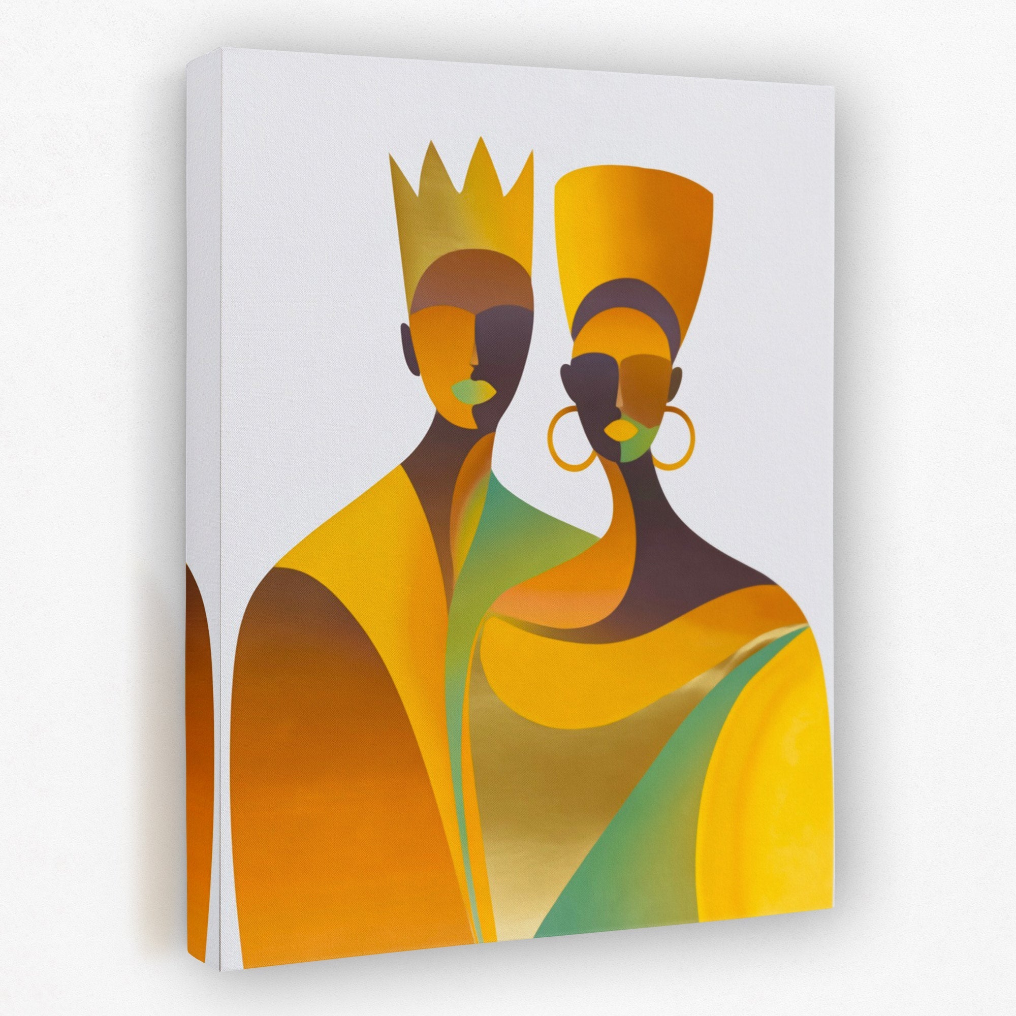 Two crowned figures in overlapping golden composition. Perfect for a couples' bedroom.