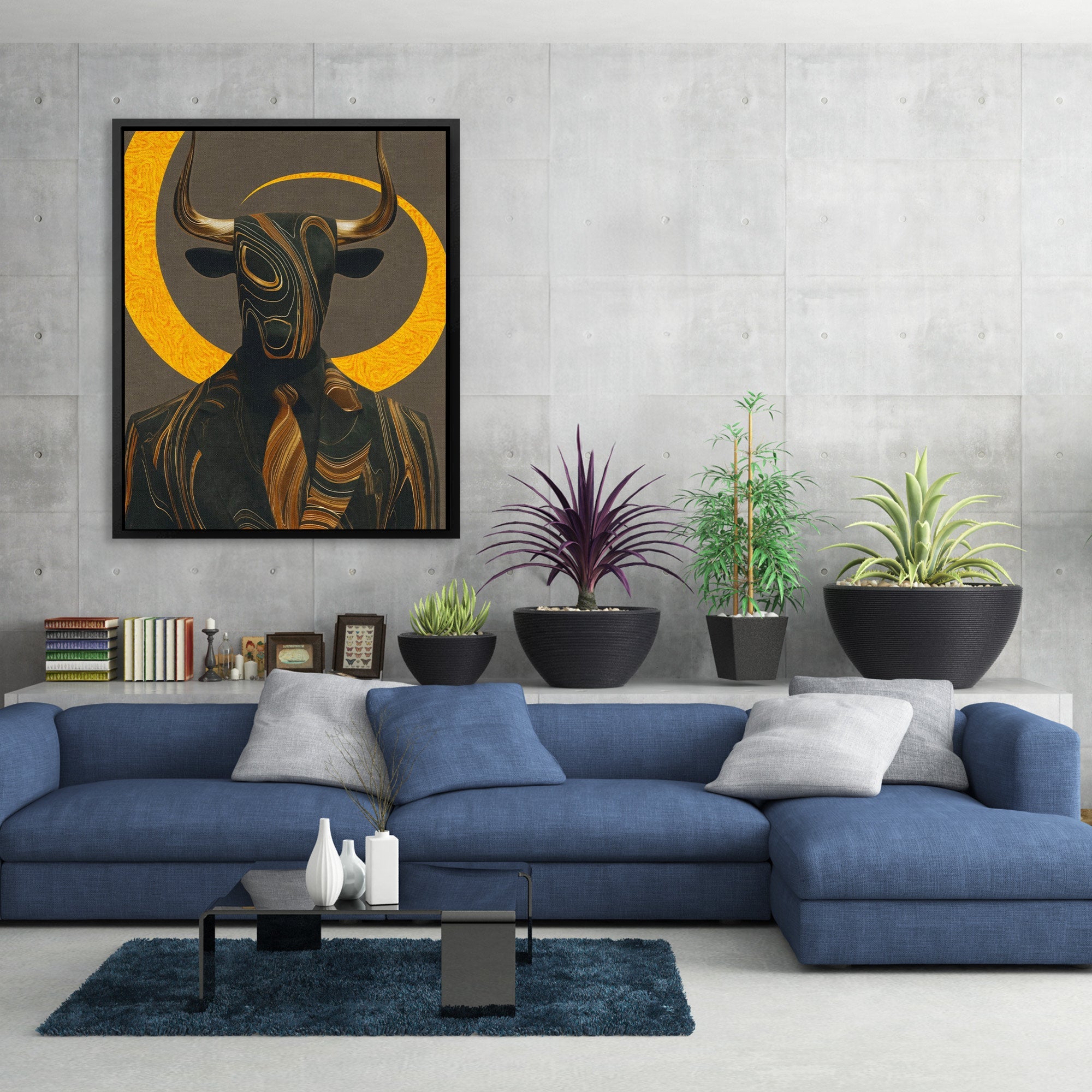 Bull-headed minotaur in business attire. A striking statement piece for any home office.