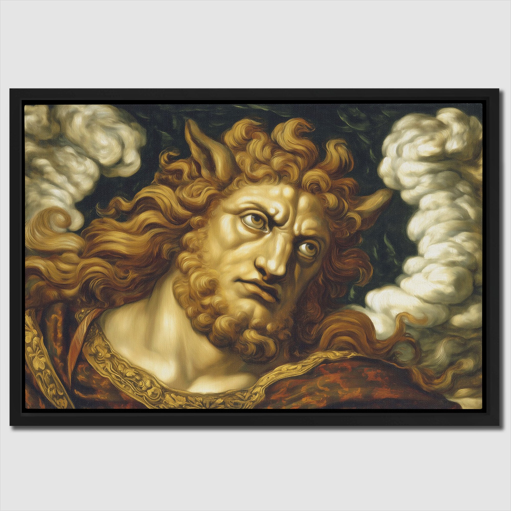 Satyr with golden curls in classical oil style. A dramatic piece for any library.