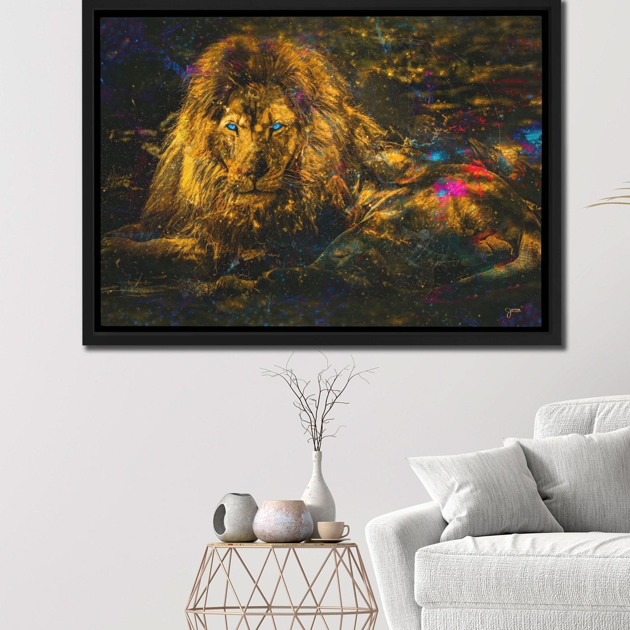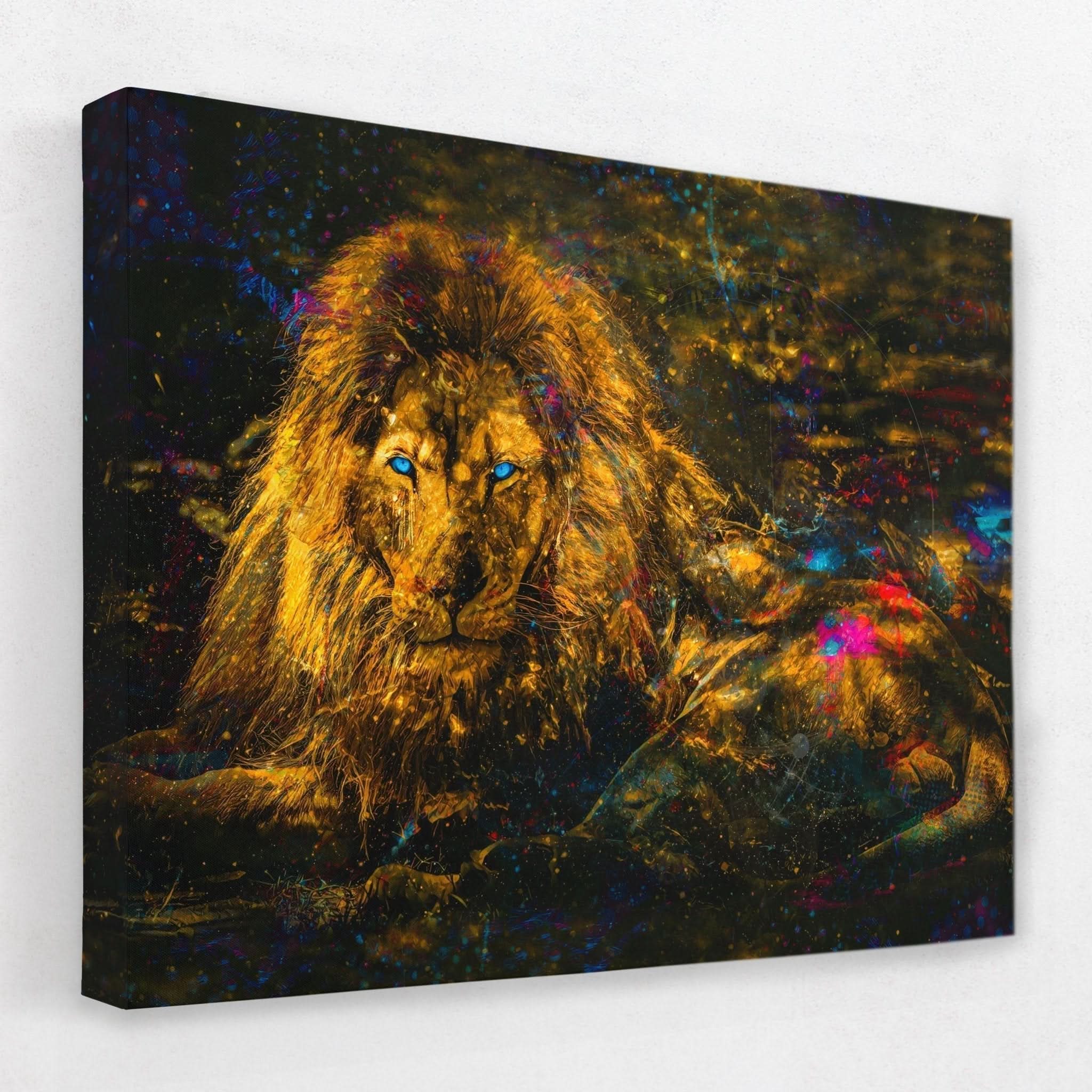 Power at rest, still commanding. This gold lion canvas works well with other lion paintings or gold wall art.