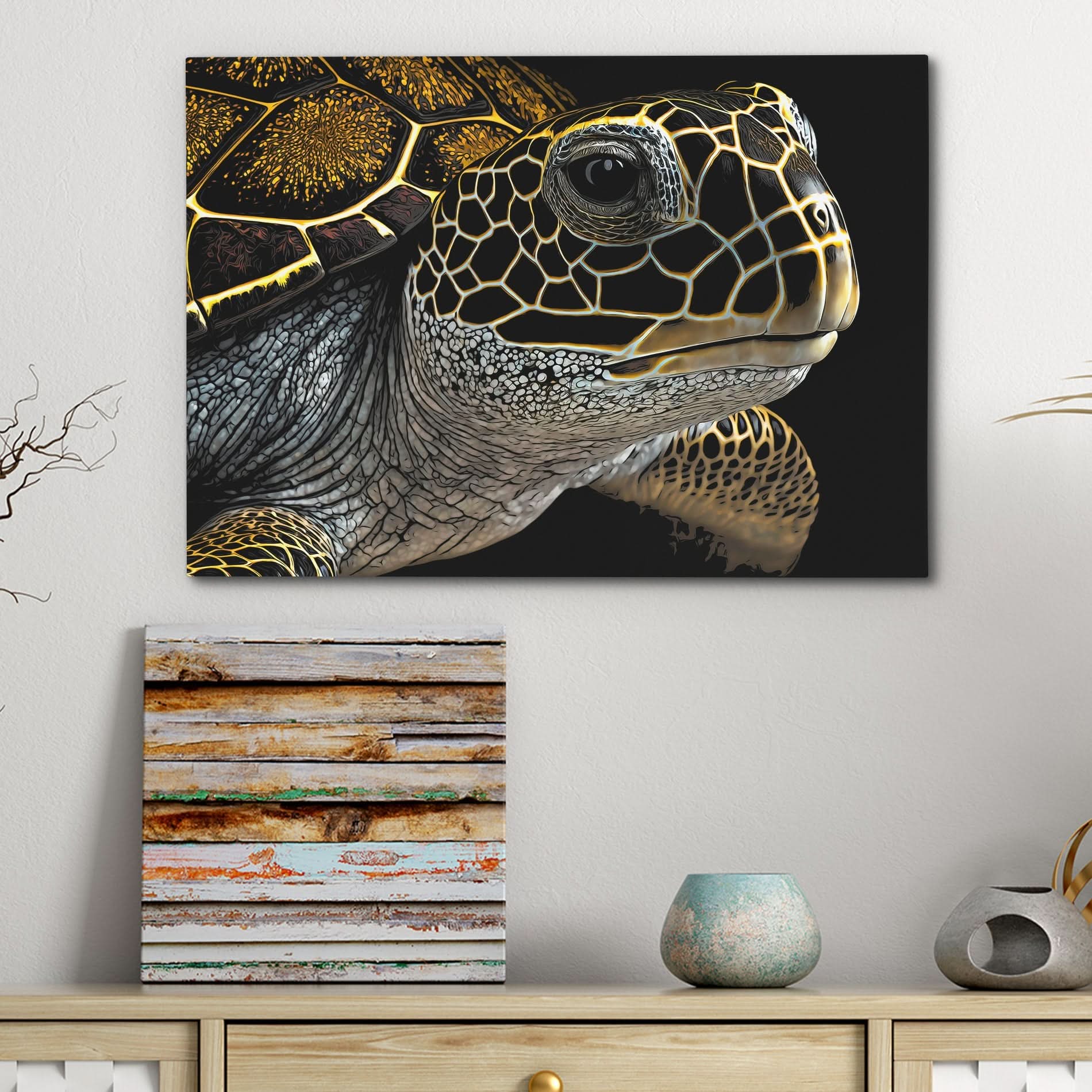 Dive into the depths of the ocean as you immerse yourself in this extraordinary Turtle Wall Art, depicting the graceful journey of a majestic Turtle's Journey as it glides through the dark and mysterious ocean.